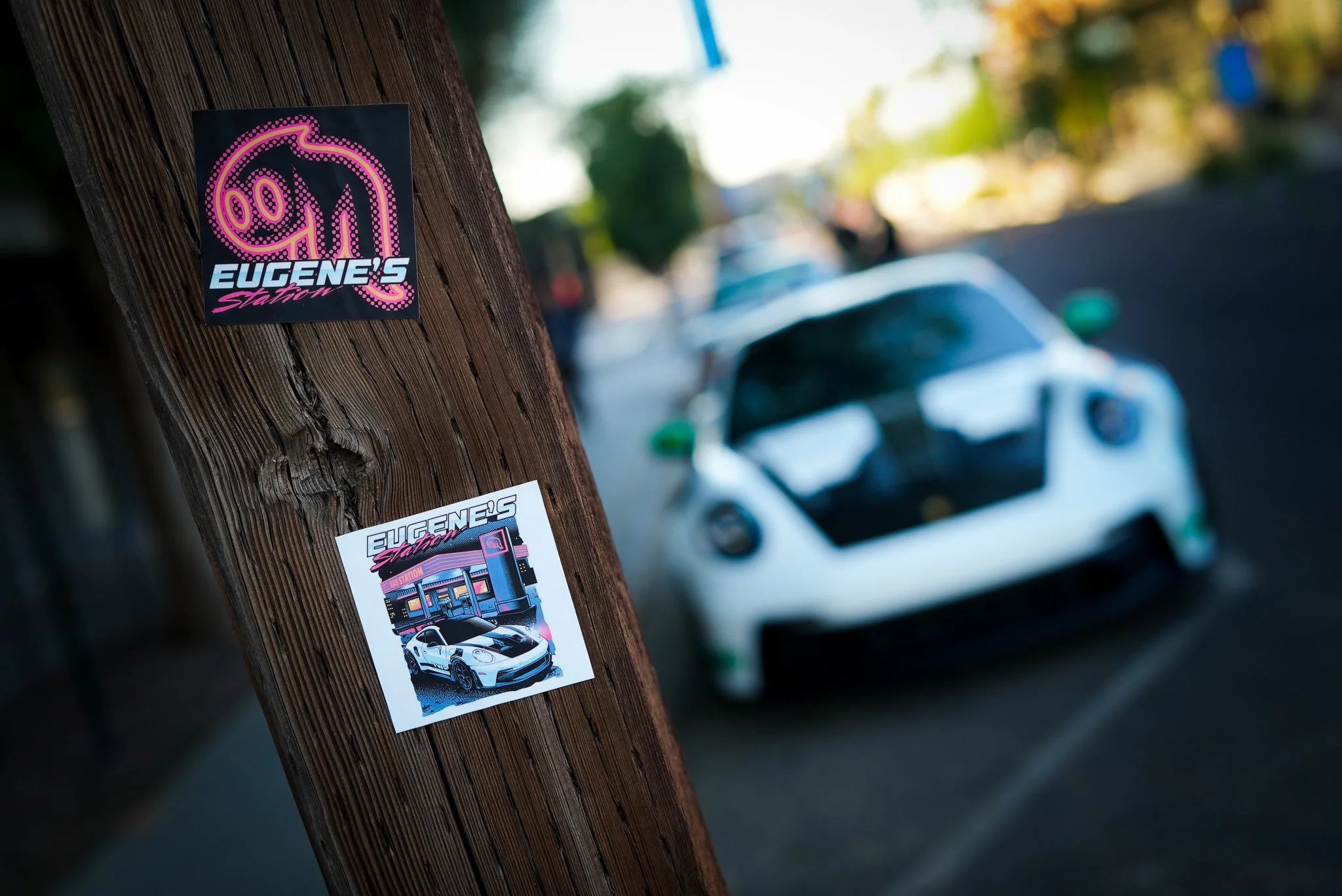 Store › Eugene’s Station sticker pack Image 1 of 1 Eugene’s Station sticker pack $8.00 • 2x 3x3inch heavy duty stickers Quantity: Add To Cart Added! • 2x 3x3inch heavy duty stickers